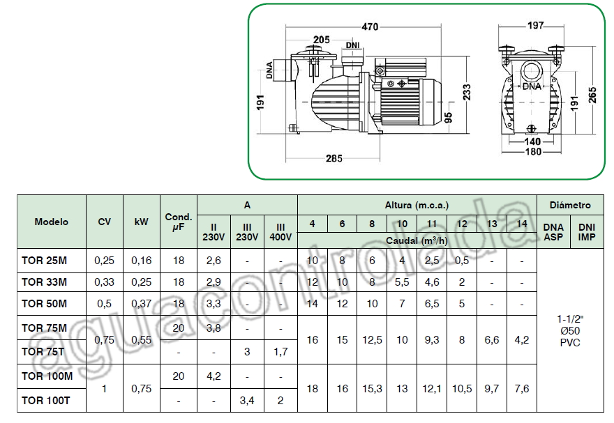 - Protección IP-55, 2.850 rpm 50Hz.