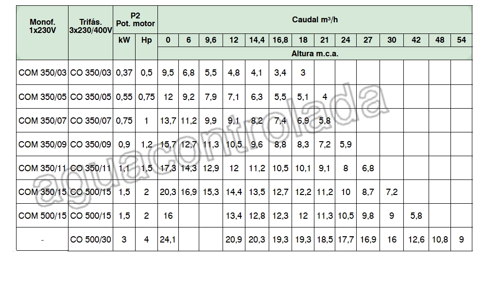 Paso de sólidos: CO 350 de 11 mm, CO 500 de 20 mm