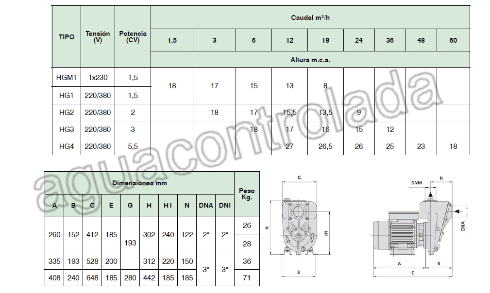 Bomba periférica Monofásica y trifásica 220 / 400 V. Seleccione el modelo entrando en el producto