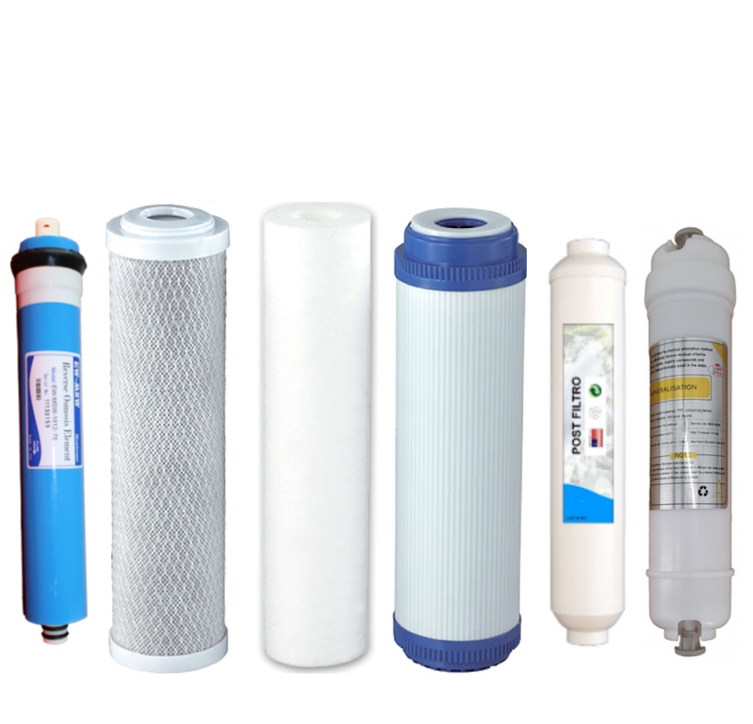 Pack 6 etapas : 3 filtros + Membrana 75 GPD + Postfiltros Carbón y Mineralización