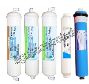 Pack 3 Fitros in ine + Postfiltro carbon + Membrana 200 GPD. Leer mas...