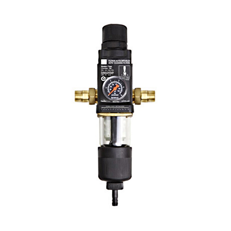 Filtro Sedimentos Autolimpiante Agua Profesional 100 Micras con sistema regulación presión y manómetro