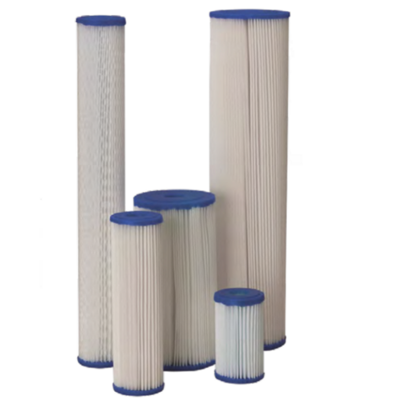 Los Cartuchos Serie R Pentair Pentek* están fabricados con tejido de poliéster no enrollado y reutilizable apto para una amplia variedad de usos de filtración. Los materiales están plegados alrededor de un núcleo de polipropileno para una mayor resistencia. Las tapas extremas plegadas de los cartuchos estándares se sumergen en plastisol de vinilo termoestable. Los cartuchos Big Blue tienen una tapa extrema moldeada con juntas. Los extremos plegados están sellados a la tapa extrema con un adhesivo termoplástico. La unión superpuesta está soldada sónicamente para reducir la derivación interna, lo que mejora la eficacia de la filtración. El cartucho de longitud 9,75" estándar tiene más de cuatro pies cuadrados de tejido de poliéster, mientras que la versión más grande de Big Blue tiene más de 16 pies cuadrados. Los materiales se pliegan para maximizar la capacidad de reserva de suciedad y ampliar el tiempo entre los cambios o la limpieza. Los Cartuchos Serie R son resistentes al ataque de bacterias y sustancias químicas, lo que los hace aptos para una variedad de aplicaciones residenciales, comerciales e industriales.