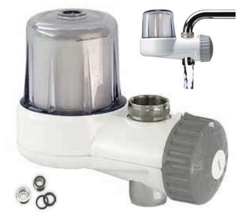 Equipo de filtrado de agua portátil y fácil de usar. Eliminación de sedimentós, cloro, olores, sabores. Ideal para apartamentos, viajes, caravaning, barcos, etc. Lavado de fruta, café, té, jarra de agua, lavado de dientes, etc.