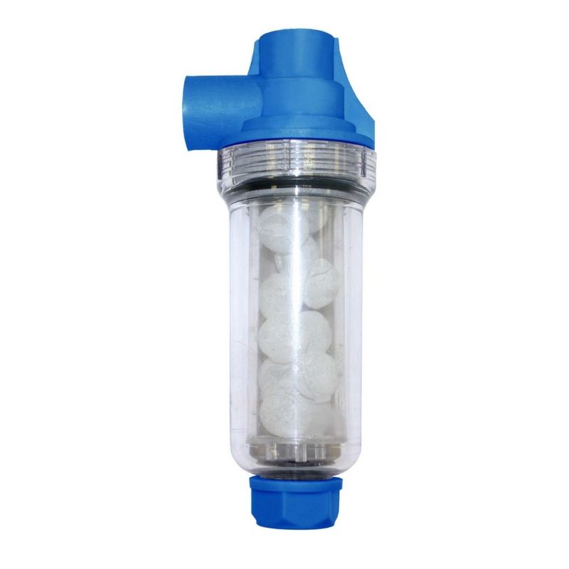 Calificación: Sin calificaciónLa cal es un mineral cuya principal propiedad es su alto poder incrustante. Hay diferentes métodos de tratar la cal. Este Filtro actua sobre la Cal inhibiendo su poder incrustante obteniendo una agua blanda. El filtro se encuentra relleno de silicofosfatos, un mineral muy parecido a la sal común utilizada en los lavaplatos. El agua al pasar por su interiór va disolviendo poco a poco las bolas de silicofosfatos que al mezclarse con el agua producen un agua blanda, donde la cal no se incrusta en los depósitos, calderines, calderas, termos , lavadoras , lavaplatos ni en las tuberías. La colocación es muy simple, no requeriendo de técnico especialista debido a que se intercala entre el serpentin y la caldera o termo o a la entrada del electrodoméstico.